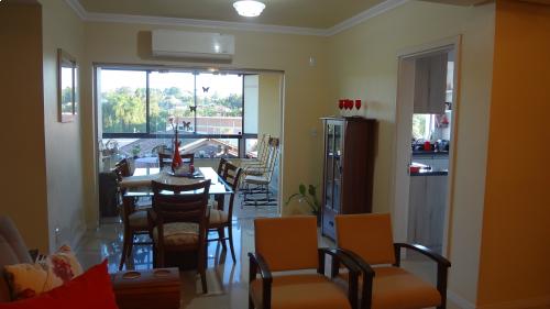 Apartamento com a área real privativa de 127,8000m², 3 dormitórios (sendo 1 suíte), banheiro, lavanderia, despensa, cozinha, sala de estar/TV e jantar, varanda gourmet com churrasqueira elétrica/gás, box, água quente, rebaixo em gesso e piso em todo o apartamento.